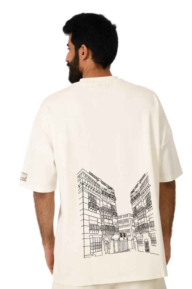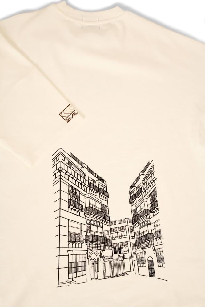 تيشيرت مميز بفكرة تصميم مستوحاة من مدينة جدة المباني القديمة الروشن مع الاعتناء بنوعية الرسم والتطريز والقماش بتقنية حديثة مما أعطت شكل مميز وجذاب وحصري للتيشيرت من تصميم متجر تو مليون مع توفير مقاسات مختلفة تناسب جميع الاحجام وتتماشى مع جميع الموديلات العصرية.