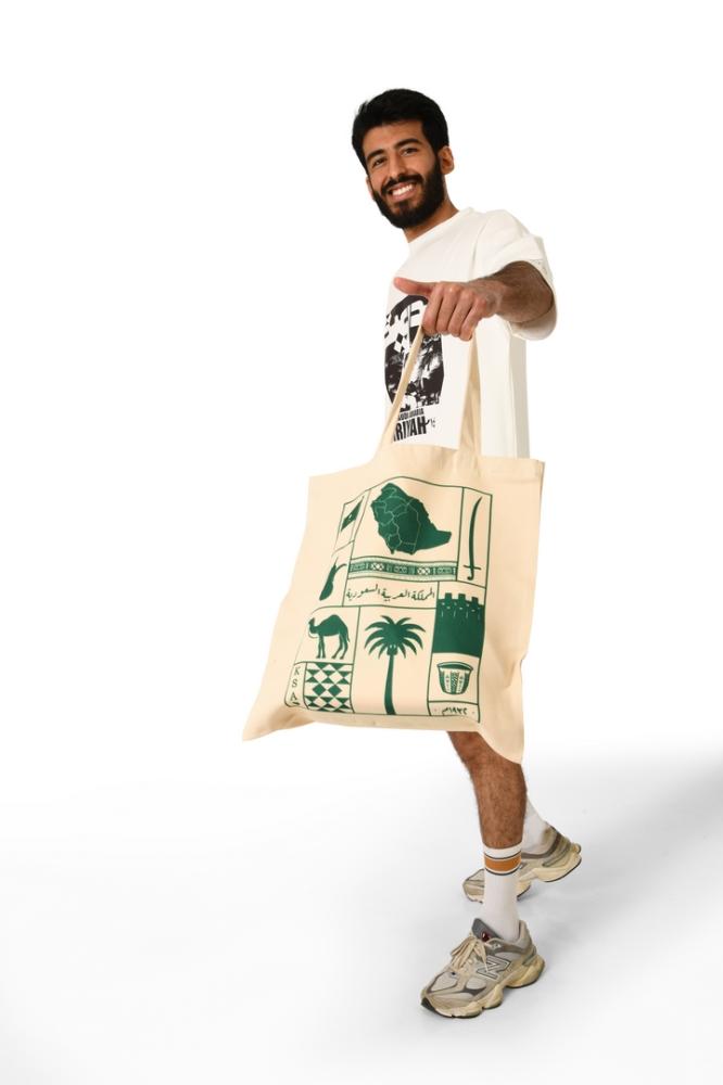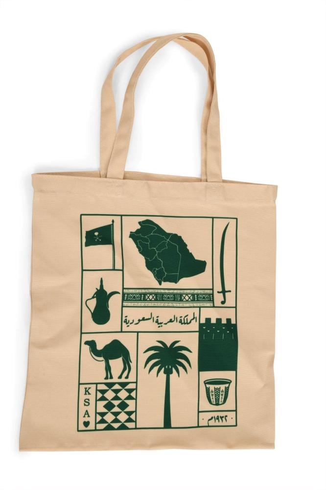 A cloth bag with a modern design with various drawings of images inspired by some of the slogans in the Kingdom, and it was chosen in a distinctive and attractive way, which gave distinction to the bag with the selection of the best types of fabric, detailing and printing with modern and exclusive techniques designed by the Two Million store, with high quality printing on the cloth and ease of carrying multiple items.